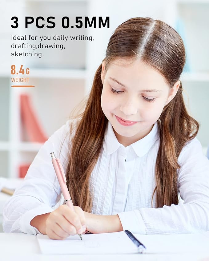 - Comfortable & Non-Slip Grip: The mechanical pencil 0.5 mm with a rubber grip, very soft and brings you to a comfortable, non-slip grip for less writing fatigue. Clip design is easily carrying, can clipped in pockets, books, note books cover
