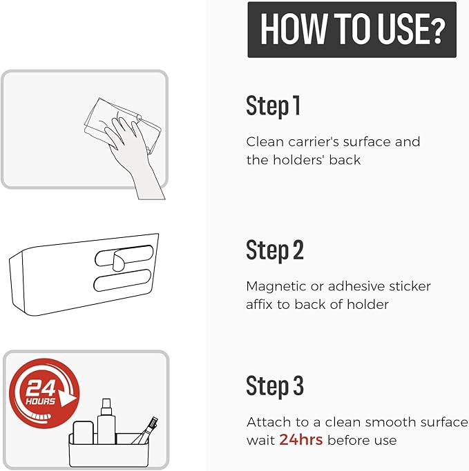 - DUAL AFFIXING DESIGN: Dry erase accessory tray with optional magnetic and adhesive stickers. Easily attaches to magnetic surfaces such as whiteboards and refrigerators with magnetic sticker and various nonmagnetic surfaces with adhesive one, too.