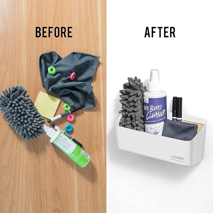 loukin Magnetic Marker Holder Set, Dry Erase Accessory Tray Set, Remote Control Holder, Magnetic Storage Organizer for Whiteboard, Glass or Refrigerators (White)