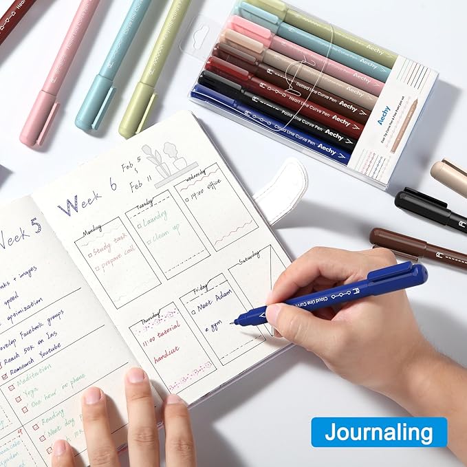 - 【8 Colors & 8 Line Types】: Each set of pens for journaling includes 8 most common colors and 8 well-designed curve line types. Draw a remarkable curve line has never been so easy