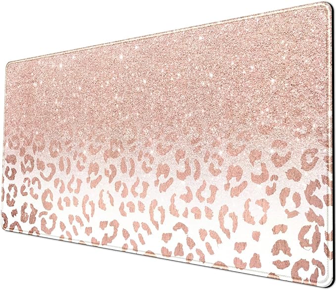 Desk Mat XXL Mouse pad, Pink Rose Gold Leopard Print Office Supplies and Accessories Decor for Women 31.5X15.75in,Stitched Edges Smooth Non-Slip Bottom, Large pad