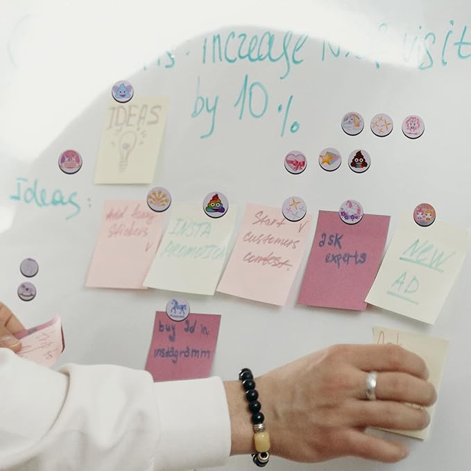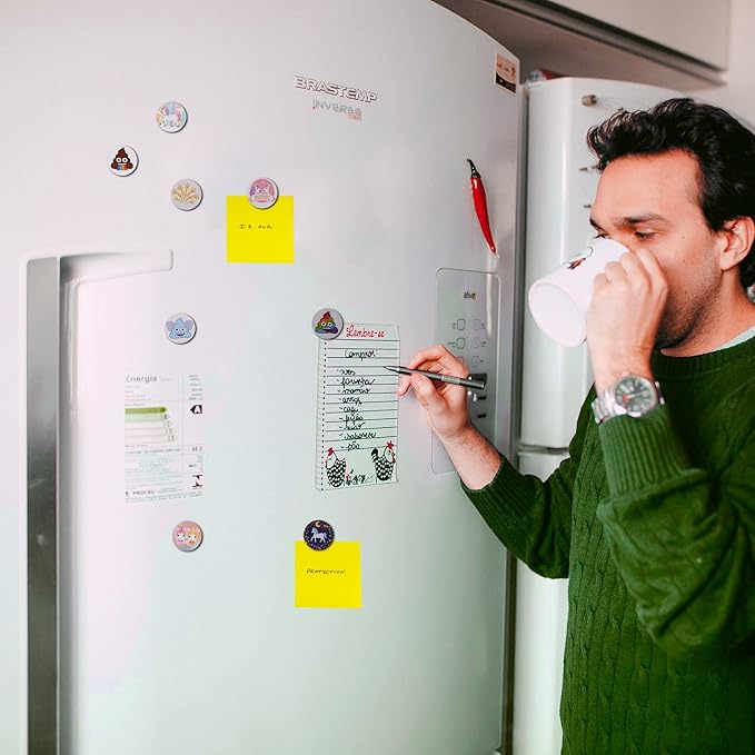 - 😎HIGHER QUALITY: The top is made of gloss film, which makes the product not easy to break. A soft magnet is used at the bottom to ensure magnetism and will not damage the furniture. After the magnetic test, each emoji magnet can hold 6 sheets of A4 paper. The waterproof and oil-proof surface makes it suitable for any magnetic place.