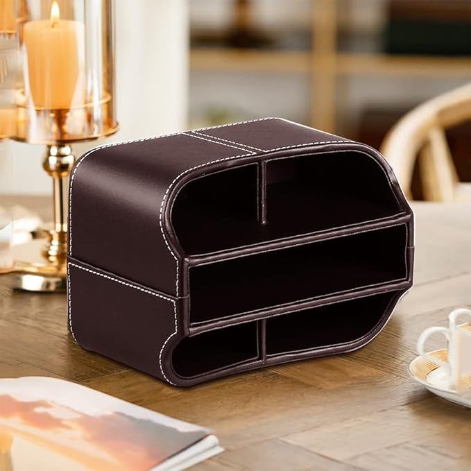 - 【Strong and Durable】- Wooden structure, quality PU leather, handmade sewing line decoration three-dimensional outline. This remote tray organizer case is very strong and easy to clean, various colors and patterns for you to choose. Everyone can find preferable style, get your desktop out of the ordinary;