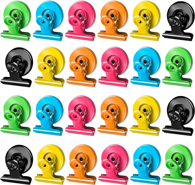 Grtard 24pack Magnetic Clips, Cute Magnet Clips for Fridge, Colorful Magnetic Clips Heavy Duty, Strong Magnetic Clip Magnets, No-Scratch Magnetic Clips for Refrigerator, Whiteboard, Locker, Classroom