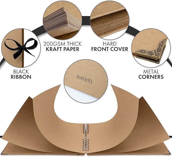 Bstorify Large Scrapbook Photo Albums 50 Pages (11 x 8.5 inch) Brown Thick Kraft Paper, Memory Book - Ideal for Your Scrapbooking, Art & Craft Projects