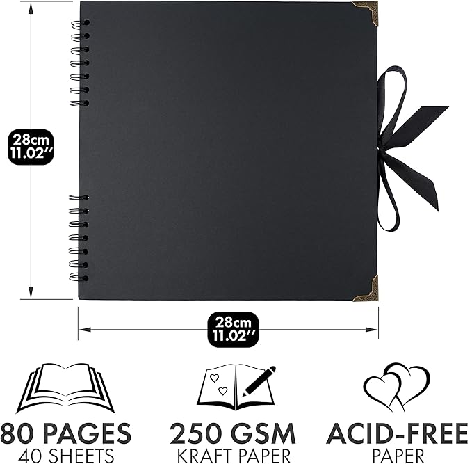 - Our 11 x 11 inches kraft scrap book is durable and suitable for long term storage for you and your loved ones beautiful memories. It has 40 sheets, 80 pages of 250gsm high quality thick Kraft paper, designed with ribbon closure, hard cover and corner protectors