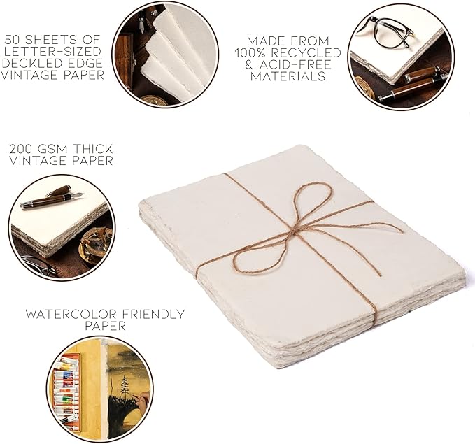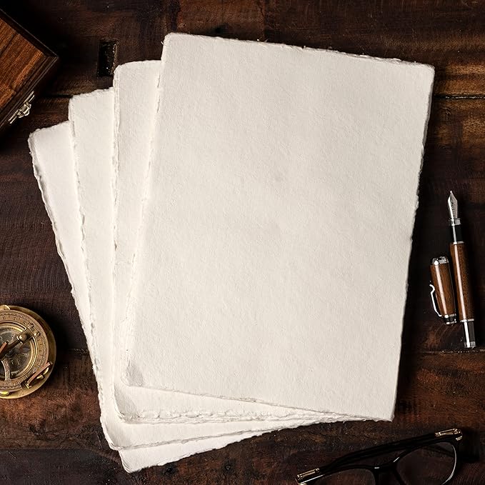 Watercolor Paper | Letter Sized Vintage Paper 8.5 x 11 Inches | 200 GSM Handmade Paper | 50 Sheets of Recycled Cotton Papers, Perfect for Any Medium, Blank Water Color Papers, Antique Paper