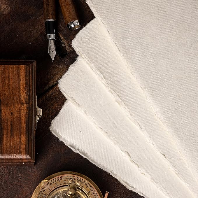 - WORKS BEST WITH ANY KIND OF MEDIUM - These blank sheets of excellent quality handmade vintage papers work best with watercolor, ink, colored pencil, marker, or other mediums. Guaranteed no bleed-through, even with ball point or gel pens.