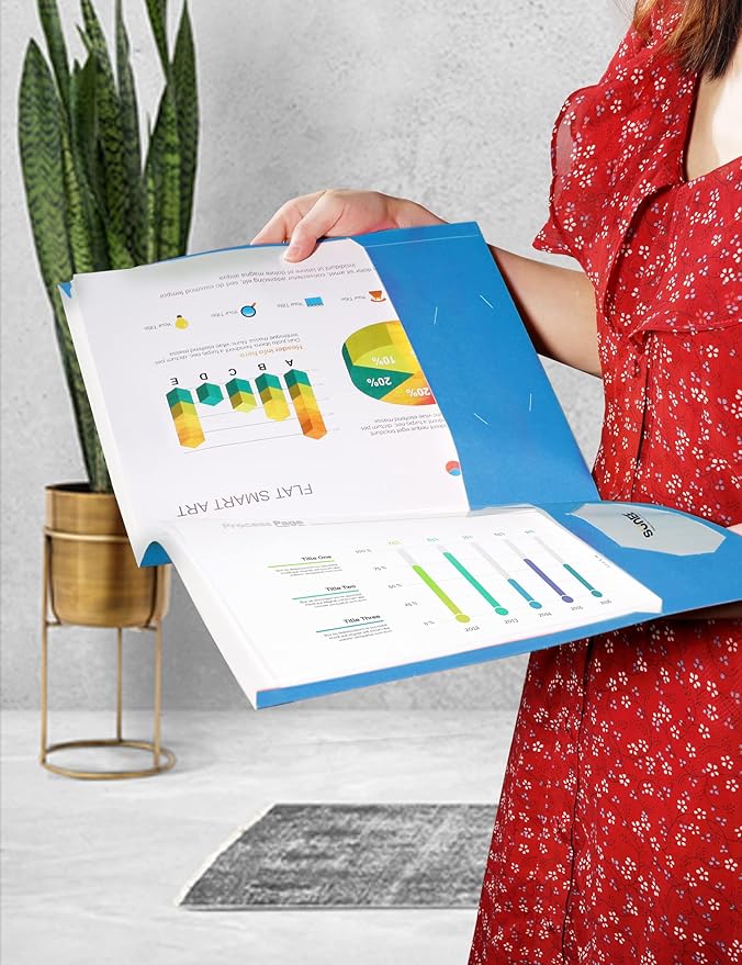 - Size: Two pocket folders support letter size (8.5" x 11") with pockets on each side that hold 50 letter size sheets, blue folders are perfect for organizing notes and loose files.