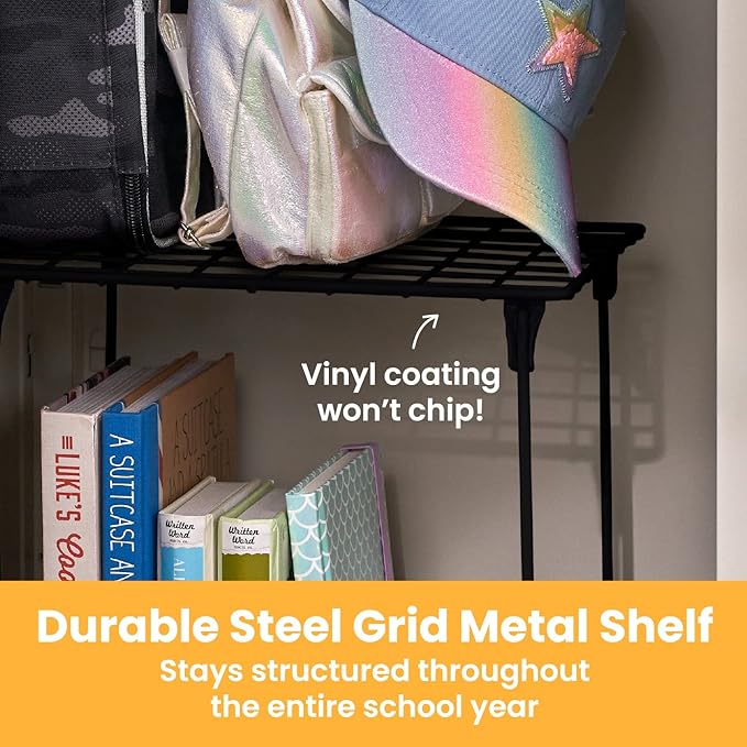 - Stackable wire shelf folds easily to place in and out of lockers without any hassle