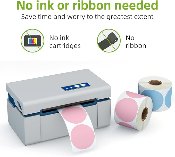 - 🧻SPECIFICATION: 2" x 2 " (51mm x 51mm) 6 Color Circle Label. 750 Labels/Roll, 6 Rolls. No Ink Toner or Ribbons Needed!