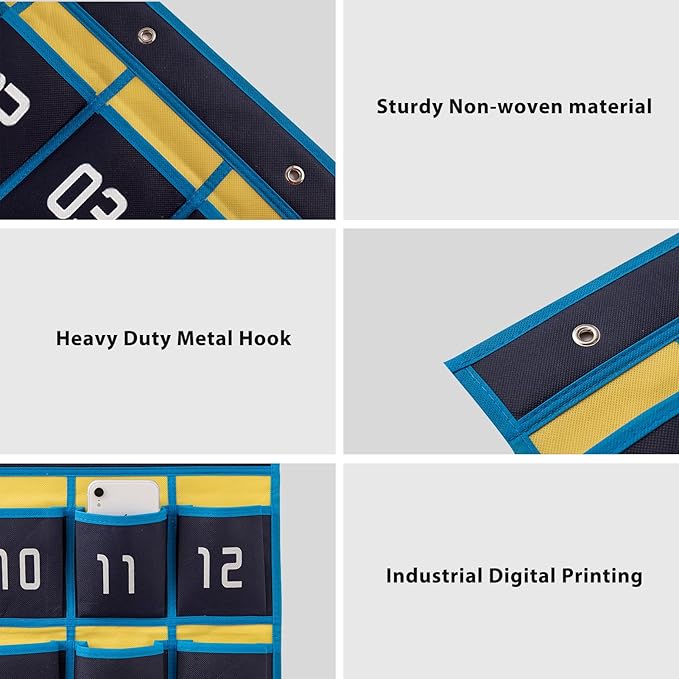HBlife 36 Pockets Numbered Classroom Organizer Pocket Chart Cell Phones Holder Wall Door Hanging Storage Bag (Blue, 1 Pack)