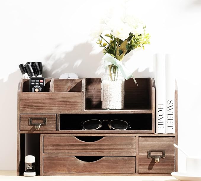 - TONS OF ROOM – With 6 Compartments and 2 Drawers, This Oversized Organizer Will Hold All of Your Desk Accessories, Mail, or Office Supplies.
