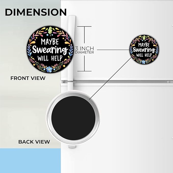 - SMILE-INDUCING DECOR FOR ANY SPACE: The "Maybe Swearing Will Help" magnet offers a light-hearted reminder to take a moment, breathe, and embrace life’s ups and downs with a smile. It's a universal nudge towards positivity, ideal for places where a touch of reassurance and humor is needed.