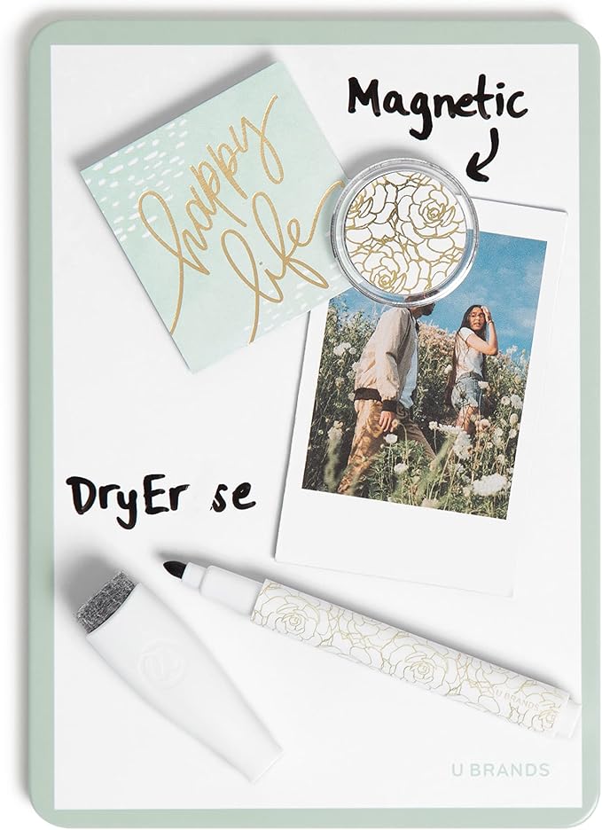- Add a space for creativity with a whiteboard featuring a sage green frame; It is accompanied one of our matching signature dry erase markers
