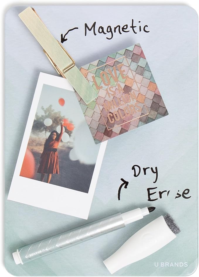 - Expand the functionality of this modern kit with a set of clothespin magnets in a matching design to hold photos, notes and more