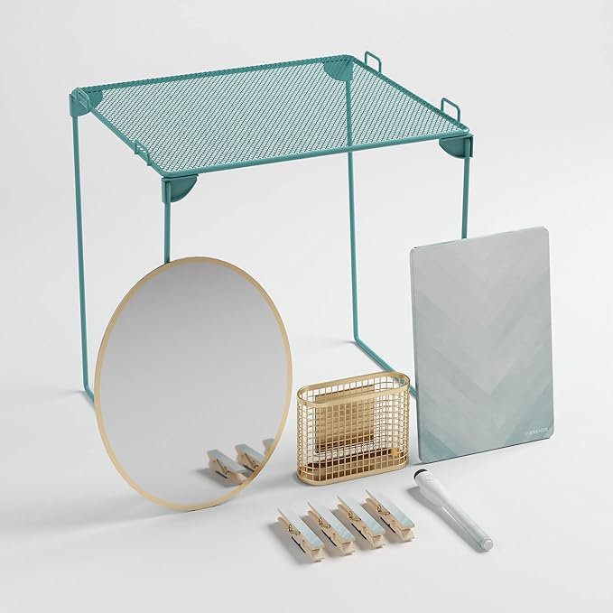 U Brands Blue Chevron Locker Accessory Kit, with Clothespin Magnets, Mirror, Whiteboard, Marker, Organizer, Shelf