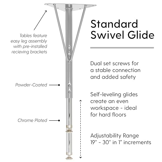 FDP Rectangle Activity School and Office Table (24 x 48 inch), Silver Standard Legs with Swivel Glides, Adjustable Height 19-30 inches - Gray Top and Black Edge
