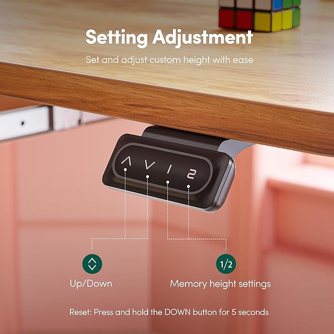 - Memory Height & Anti-Collison Technology: Standing desk has 3 programmable memory height buttons. If the adjustable desk encounters obstacles when lifting, it will move 2cm in the opposite direction to avoid possible damage or injury