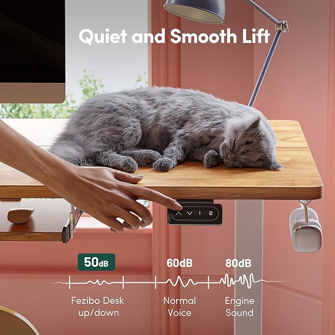 - Electric Height Adjustable Lifting System: FEZIBO standing desk has reliable motor that could support height adjustment between 27.3''-45.5'' (30.3''-48.5'' with detachable lockable casters included) with low noise(under 50 dB) while running