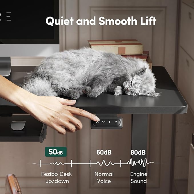 - Electric Height Adjustable Lifting System: FEZIBO standing desk has reliable motor that could support height adjustment between 27.3''-45.5'' (30.3''-48.5'' with detachable lockable casters included) with low noise(under 50 dB) while running