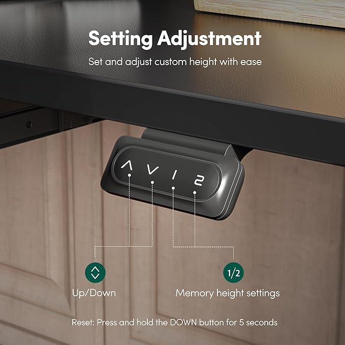 - Memory Height & Anti-Collison Technology: Standing desk has 3 programmable memory height buttons. If the adjustable desk encounters obstacles when lifting, it will move 2cm in the opposite direction to avoid possible damage or injury