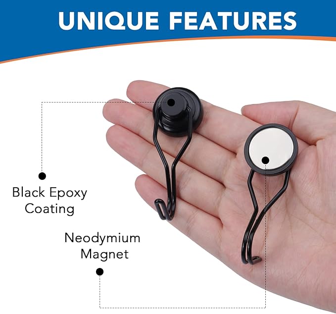 - 【 High-quality Magnetic Coating 】 The magnet hooks adopts a three-layer epoxy resin + nickel + copper coating, providing a lustrous and anti-rust coated steel cup for the magnetic hook, offering protection for the magnetic hook and helping to prevent cracking or breaking.