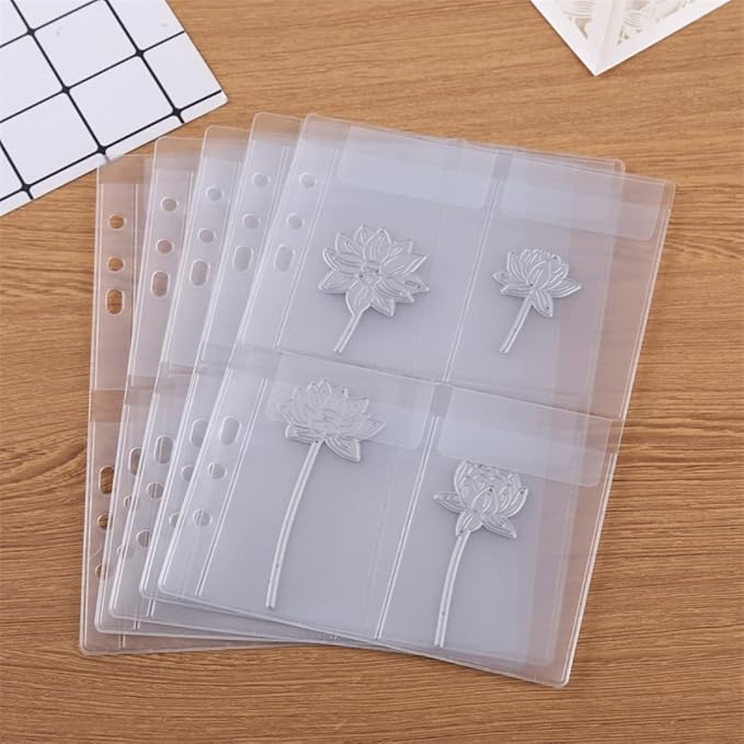 - [HIGH VALUE PACK INCLUDES] --10PCS 6 Holes Folders Loose Leaf Bag Overall Overall size: 14.5x20.5cm /5.7x8inch, ,each pocket size:6.3x10cm/2.5x3.9 inch, Transparent 4 grid 6 holes file document bags, enough for you to hold various items, you can use them in office Stamp & Die Storage Bills Organizer