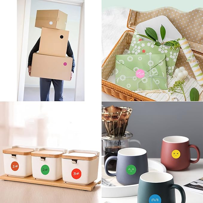 - Wide Application: The color round stickers are widely used for retailers, boutiques, stores etc. The stickers can be easily pasted on envelopes, gift cards, shop bags, books, cups, files, paperwork etc, which are suitable for decorating, color coding, marking, organizing, gift labeling etc.