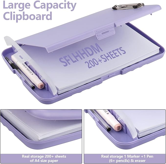 - High Capacity: Clipboard design with storage space, can securely hold up more than 200 letter-sized documents, it has twice the capacity of other clipboards. Have a pen holder at the bottom of the clipboard case, can holds up to 6 pencils