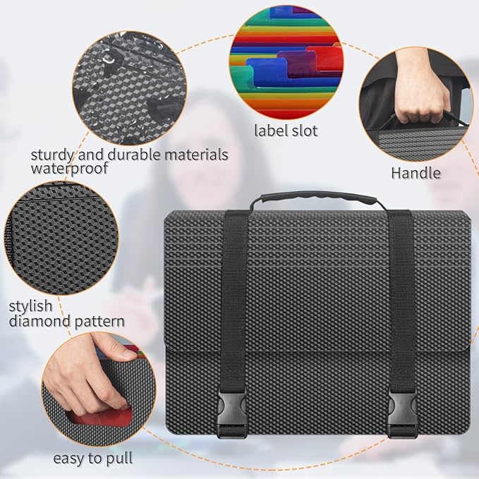 - 【Upgraded Cover and Style】: The cover thickness of our accordion folder is 1 1/5 mm, which is 20% thicker than other folders. Made of polypropylene plastic with a brand new carbon fiber pattern,it is waterproof and has better stains and scratch resistance to protect your important papers. The full-size flap offers an added layer of protection and helps keep stored items firmly in place during transport.