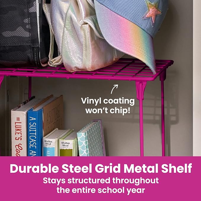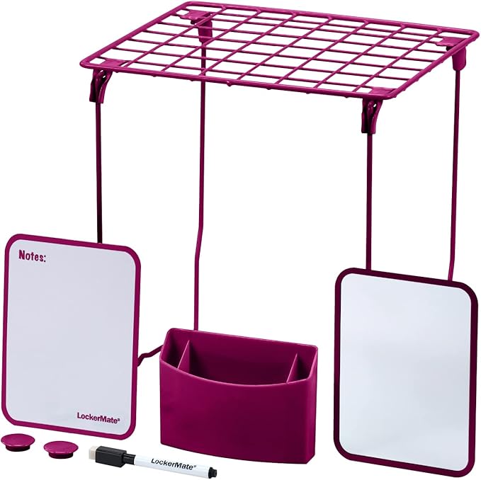 LockerMate 7-Piece Locker Organizer Kit, Includes Locker Shelf, Mirror, Whiteboard, Storage Cup & Dry Erase Marker, Pink