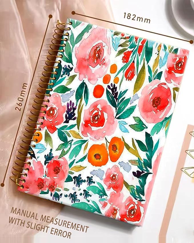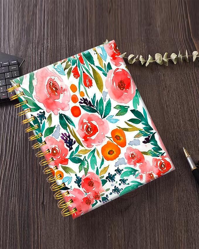 iampanda Spiral Journal Notebook,Cute Strong Twin-Wire Binding with Premium Paper for Girl Women,60 Sheets A5 College Ruled Notebook/Journal,Perfect for School Office Home Gifts,Watercolor Rose Floral