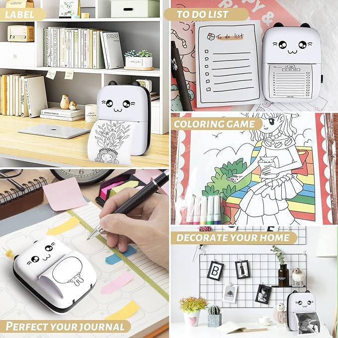 - 🎁【Multifunctional Pocket Printer & Ideal Gift】Inkless pocket printer is used to print black and white pictures/photos,memo,shopping lists,study/meeting notes,business, work plan, office assistant, shopping list,labels, messages, lists, web pages, QR codes, records,etc. Suitable for office, home, students,children, amateur archivists, treasure moms and other application themes. Also a best gifts for kids on festivals/Christmas/New Year/Birthday.