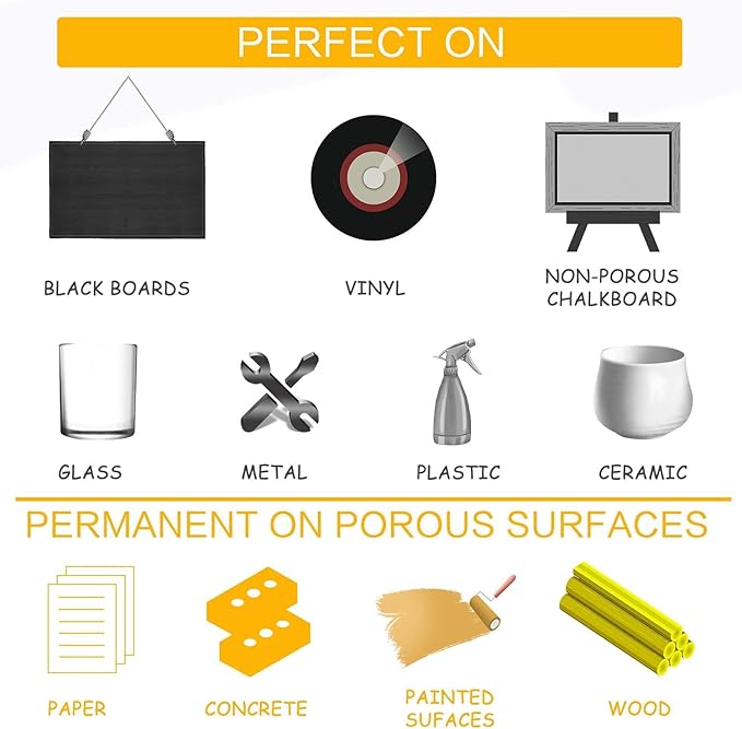 - WIPE OFF EASILY -liquid chalk markers can be erased easily by wiping the area with a damp cloth or paper towel.(ERASABLE ON NON-POROUS SURFACE ONLY!)