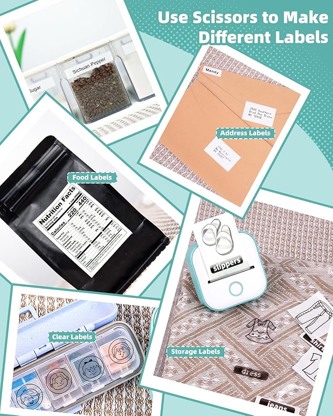 - Customized Label Maker Machine: T02 mini label printer comes with 3 rolls of thermal paper, you can cut the printouts into labels of any shape and size just with a scissor for all your labeling needs