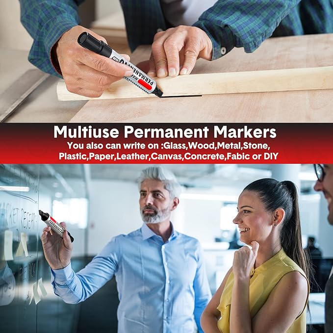 - Multi Use: these permanent marker sets have a wide range of applications, including powerful black ink marks on wet and oily surfaces, for industrial work on wood, metal, plastic, stone, glass