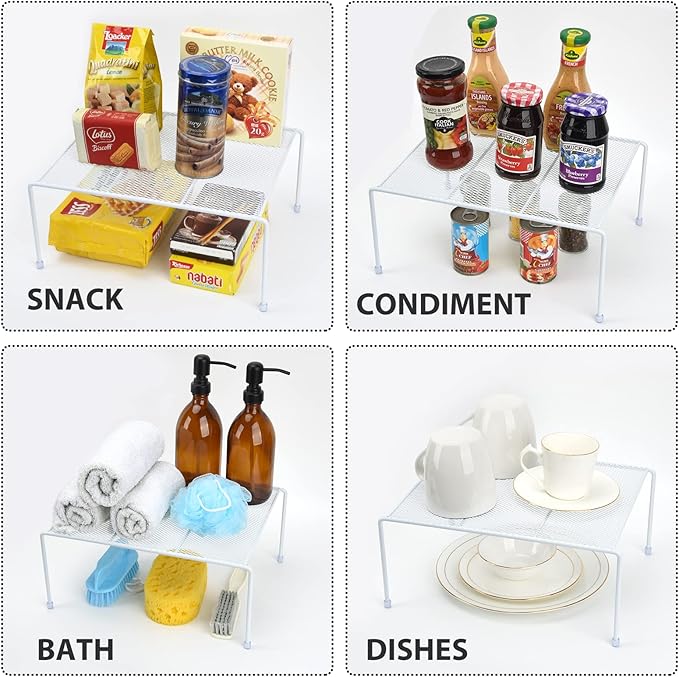 Set of 4 Mesh Kitchen Shelves Cabinet Storage Shelf Rack (13.1 x 10.2 Inch) ,Kitchen Bathroom Pantry Cupboard Desk Home Office, Fridge, Cabinet, Bathroom Cupboard, Non-Slip Plastic Feet (4, White)