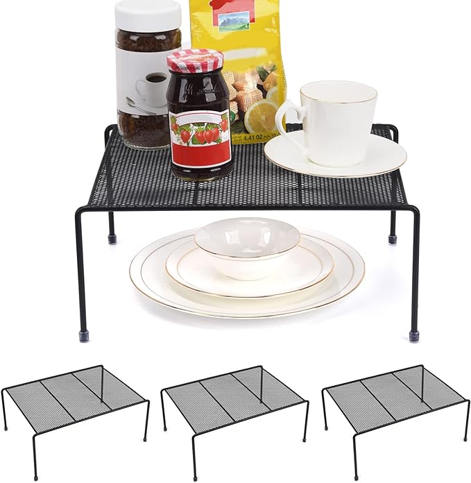 Set of 4 Mesh Kitchen Shelves Cabinet Storage Shelf Rack (13.1 x 10.2 Inch) ,Kitchen Bathroom Pantry Cupboard Desk Home Office, Fridge, Non-Slip Plastic Feet (4, Black)