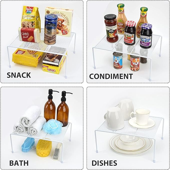 Set of 6 Mesh Kitchen Shelves Cabinet Storage Shelf Rack (13.1 x 10.2 Inch) ,Kitchen Bathroom Pantry Cupboard Desk Home Office, Fridge, Cabinet, Bathroom Cupboard, Non-Slip Plastic Feet (6, White)