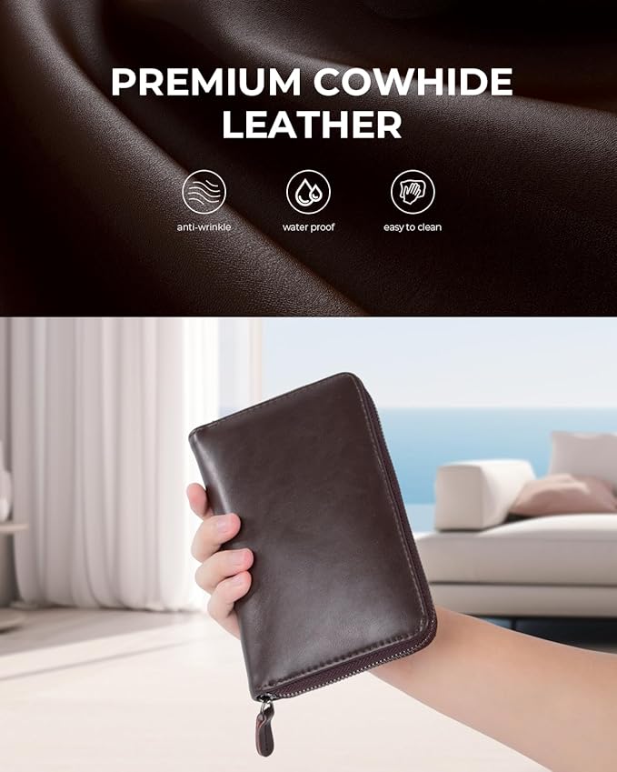 - Leather Pencil Pouch: Made of Genuine Leather with strong zipper ,durable, quality guaranteed.Case Size :6.7 x 3 x1 inches,including independent pen plug, net pocket which can store small items