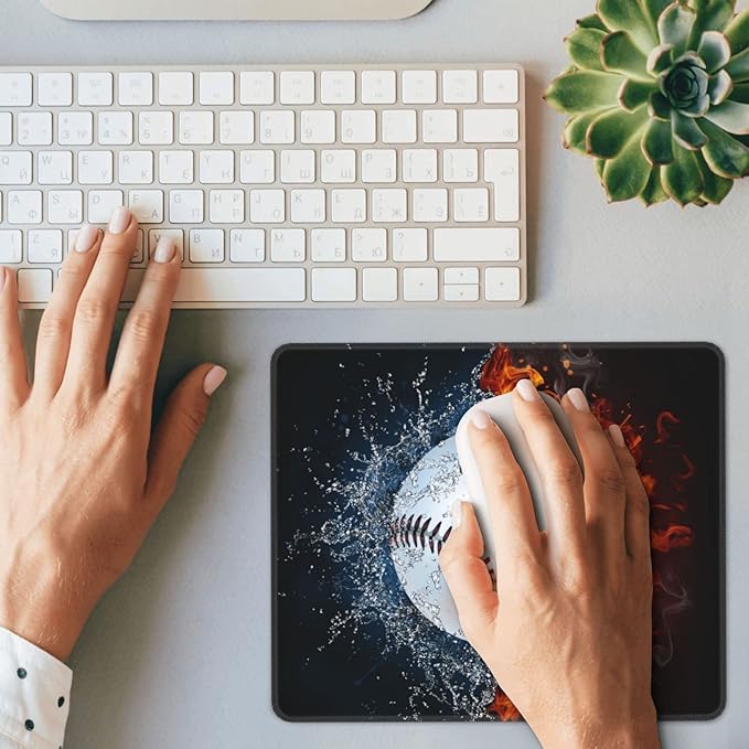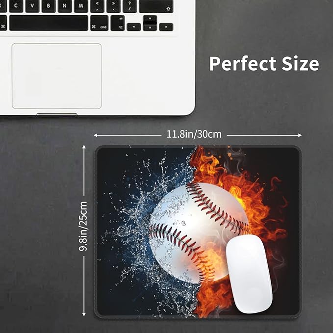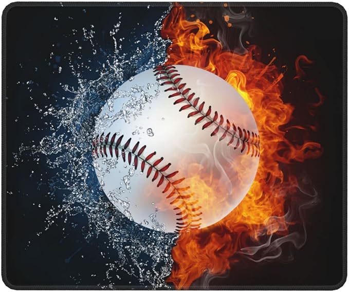 Baseball Mouse Pad for Boys Men Desk, Cool Sports-Themed Mouse Pads with Fire & Water Pattern Printed, Rectangle Non-Slip Rubber Base Gaming Mousepad for Laptop Computer
