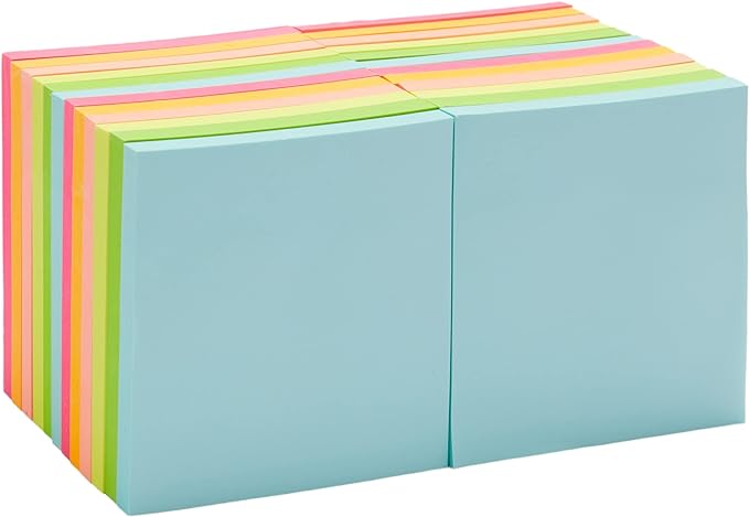 Amazon Basics Square Sticky Notes, Office Supplies for Desk, 3-x-3-inch, 24-Pack, Assorted Colors