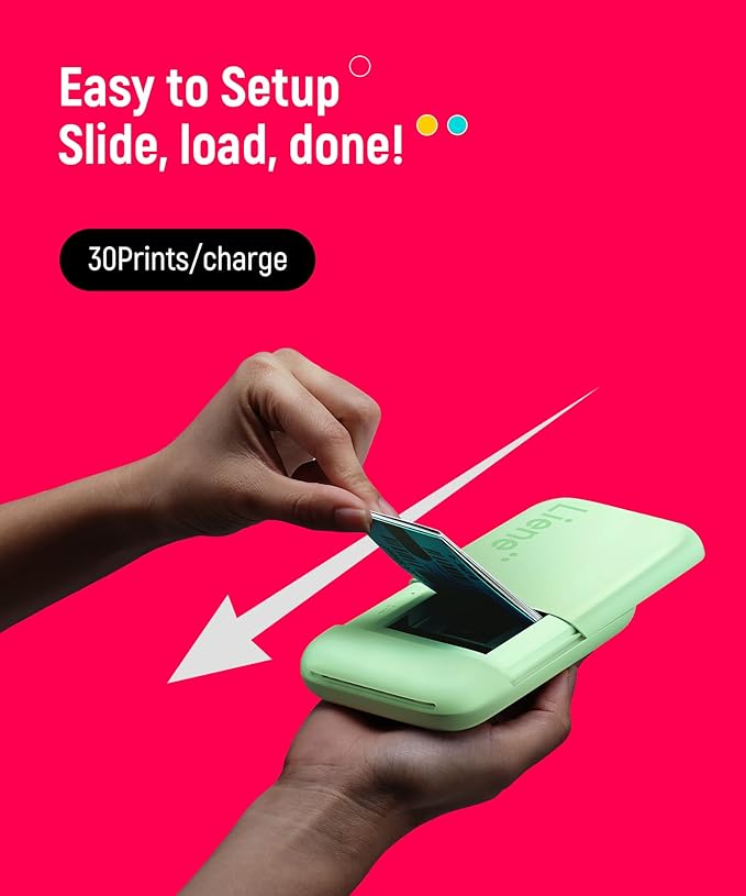 - [Easy to Connect and Use] Say goodbye to the computer connections and bulky equipment! With a 5.0 Bluetooth connection, this portable photo printer connects to any iOS or Android smartphone quickly. You can easily turn selfies, social media posts, and other images into a piece of 2*3" physical photos. In addition, we have adopted a sliding cover design for the iphone photo printer. You can easily even do it with one hand.