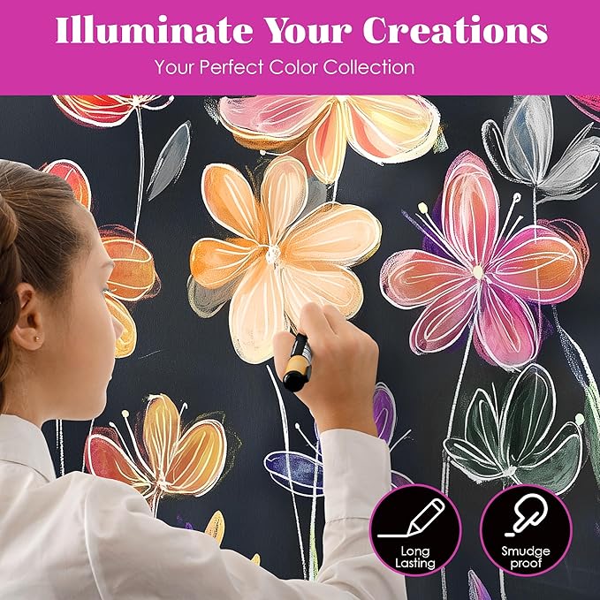 - Erasable Creativity: Use these erasable chalk markers on any non-porous surface and wipe these fine liquid chalk markers for chalkboard clean with water. These chalkboard chalk markers are perfect for eye-catching storefront displays or adding creativity to your home. These chalk pens for chalkboard are a must-have for every artist's toolkit