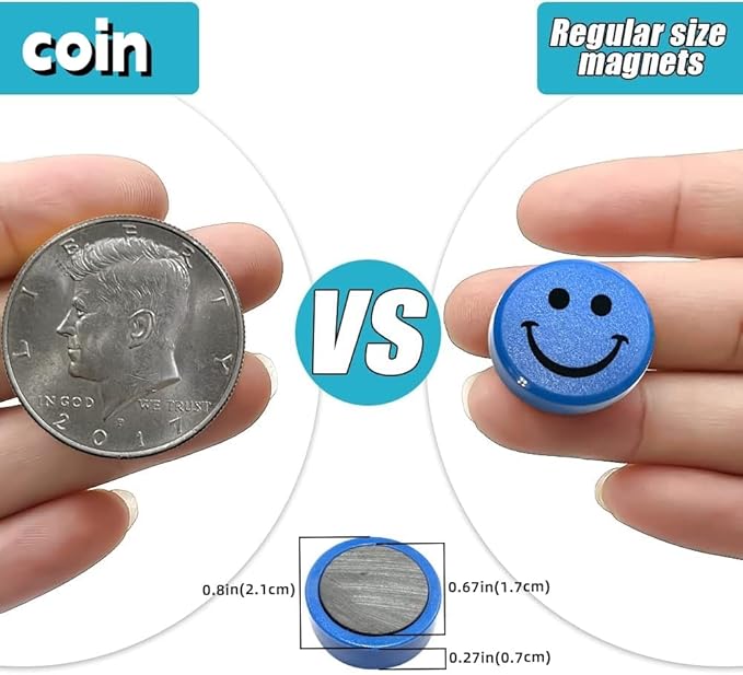 - Colorful and Fun Magnets: This set includes 20 cute magnets in 10 vibrant colors. Each magnet is 0.8 in/20mm in diameter and 0.29 in/8mm thick. These small, colorful magnets are perfect for various uses, including on refrigerators, whiteboards, and lockers. Note: Please double-check the size to ensure it fits your needs. Recommended for children 3 years and older. Keep out of reach of children or pets.
