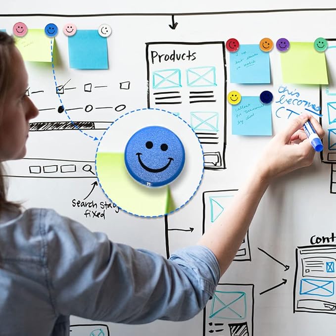 DARUITE Fridge Magnets, 20pcs Strong Refrigerator Magnets for Whiteboard, Small Heavy Duty Mini Cute Magnets for Fridge, Locker, White Board, Kitchen, Office (Smile)