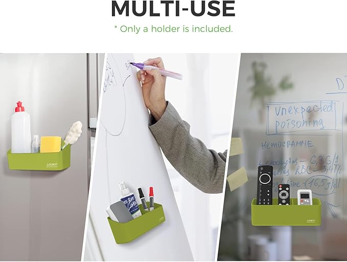 loukin Magnetic and Adhesive Marker Holder, Dry Erase Accessory Tray, Magnetic Storage Organizer for Whiteboard, Glass or Refrigerators (Green)