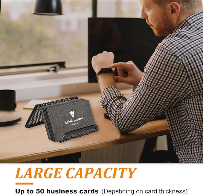 - 【Large Capacity Design】Measuring 3.82x2.99x1.97 inches this business card holder fits most desk business card holders setups. It holds approximately 35-45 business cards depending on thickness keeping cards organized without taking much desk space