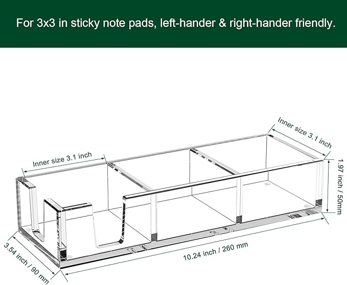 - Non-skid Silicone Pads - beneath each corner of the acrylic sticky note dispenser, make it stay in place with no slide or scratch on your desk. The solid acrylic memo pad holder is a great home office set up accessories decor, a good-to-have decent desk organizer.